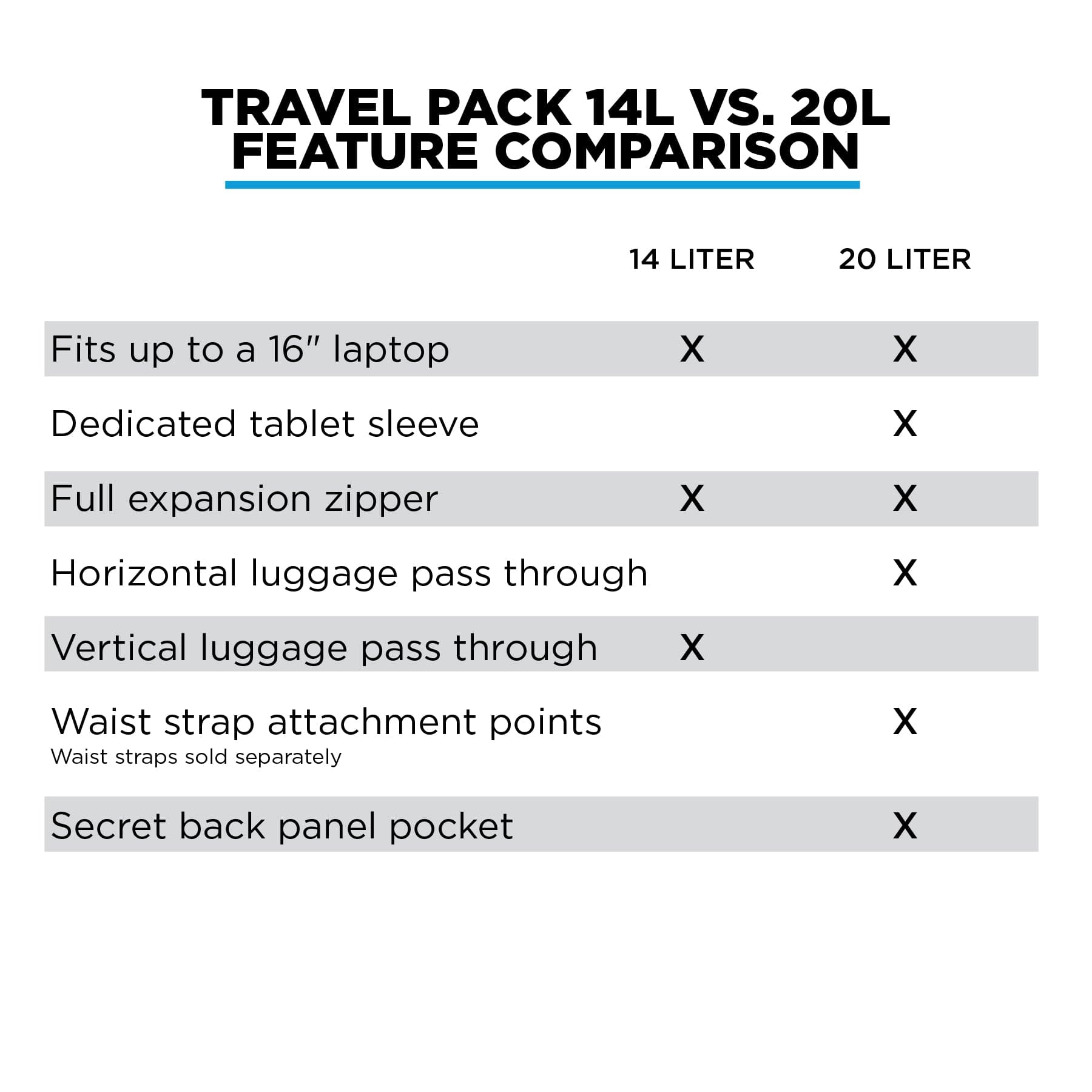 What's the difference between the Travel Pack 20L and the Travel Pack 14L